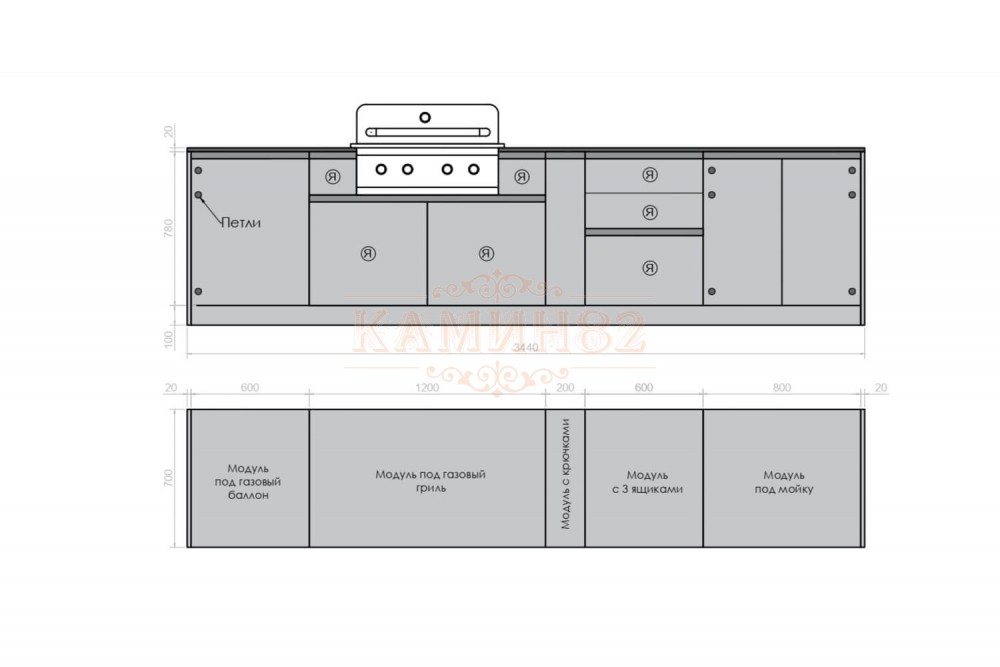 Все о товаре: Кухня ASTOV BBQ / АСТОВ БАРБЕКЮ № 2 (ширина 3440 мм)